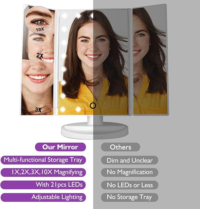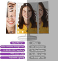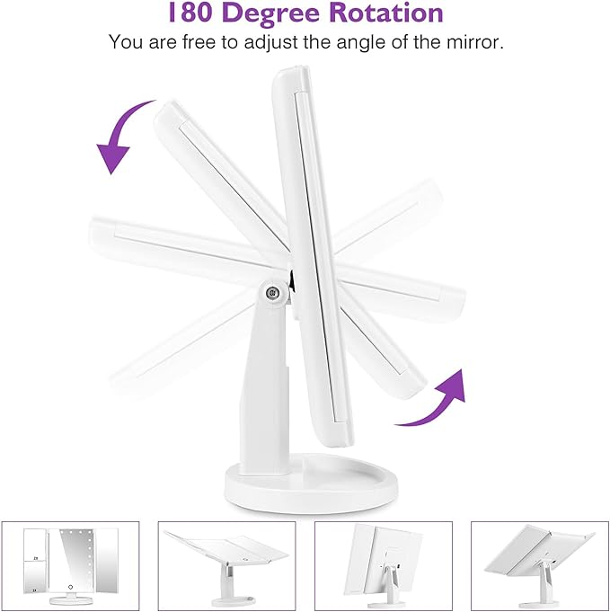 Our 22" LED Touch-Screen Mirror is the perfect tabletop cosmetic mirror. The rectangular mirror opens with two smaller butterfly sides to help you see every angle. It also lights up to help you apply your makeup or skincare routine flawlessly.